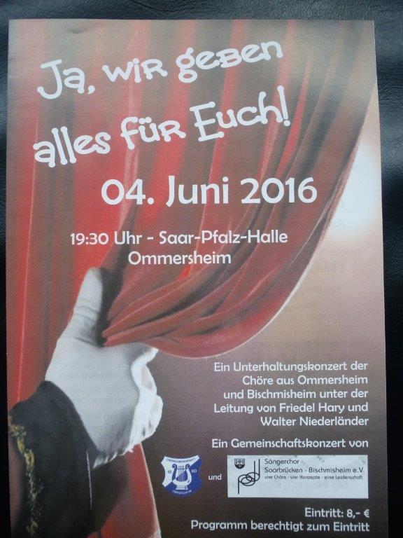 Gemeinschaftskonzert am 04. Juni 2016 in Ommersheim mit der Chorgemeinschaft Ommersheim und dem Sängerchor Bischmisheim