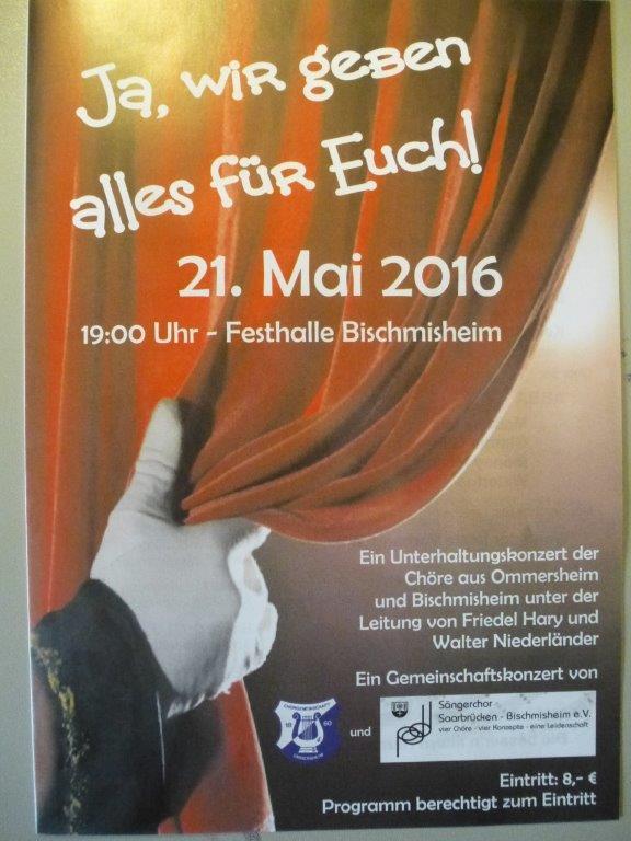 Gemeinschaftskonzert am 21. Mai 2016 in Bischmisheim mit der Chorgemeinschaft Ommersheim und dem Sängerchor Bischmisheim